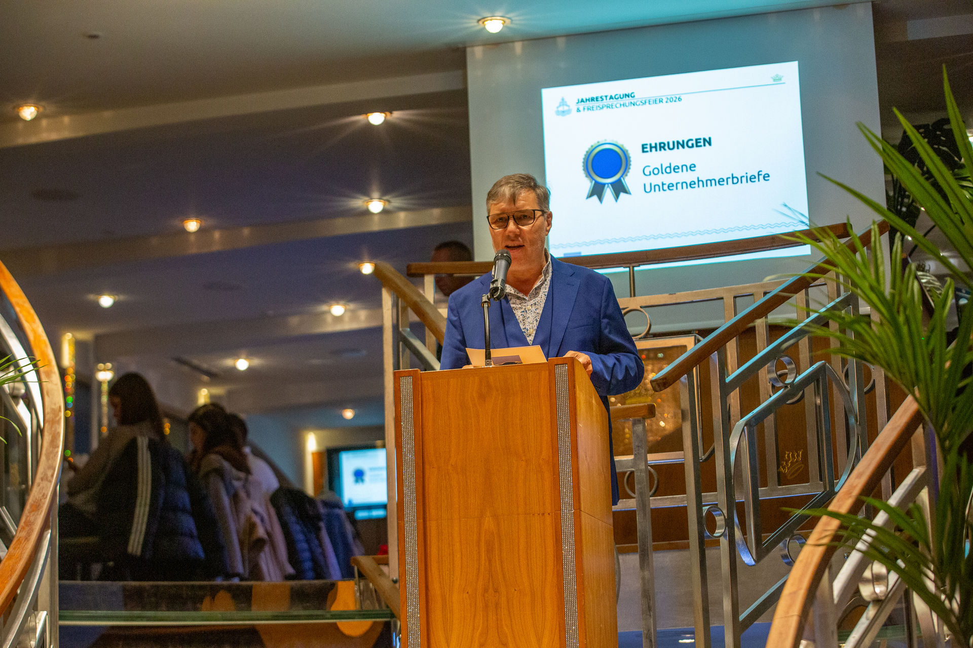 Unter dem Motto "Ehre, wem Ehre gebührt" möchten wir nach den Regularien und Beschlüssen, sowohl den Prüfungsbesten aus den technischen und kaufmännischen Berufen des Kfz-Gewerbes gratulieren, als auch den langjährigen Innungsmitgliedern anhand des Goldenen Unternehmerbriefs unsere Anerkennung aussprechen.